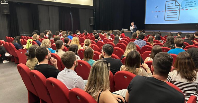 Peut-on vraiment s’amuser avec une dictée en français ? Oui, si on ne la considère pas comme une évaluation, mais comme un jeu, une compétition entre jeunes apprenants de français. La dictée renforce la compréhension orale, la mémoire et la logique. «La dictée francophone pour tous» organisée conjointement par l’Institut français Napoli et l’Università di Napoli L’Orientale, s’est déroulée en deux temps : une préparation par les professeurs dans les collèges et lycées (en particulier des collèges du réseau CLIL-EMILE Napoli Nord-Ovest) puis la finale de «La dictée francophone pour tous», lundi 29 mai à l’Institut français, qui a accueilli 85 participants de Campania et de Puglia.