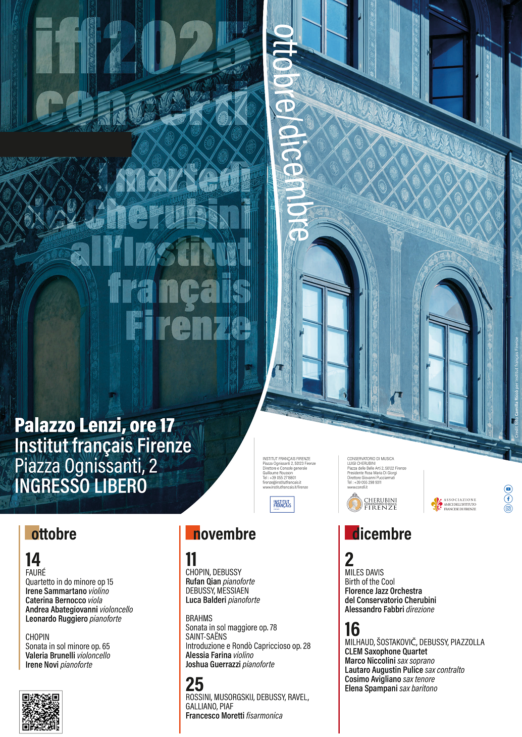 Il Conservatorio Luigi Cherubini e l’Istituto Francese di Firenze hanno inaugurato nel 2019 una nuova stagione di concerti da camera che si terranno nel teatro dell’nstitut français Firenze. La Rassegna, denominata “I Martedi del Cherubini”, si tiene sempre di martedì alle ore 17:00, con ingresso libero. Il programma vedrà impegnati i più validi solisti ed ensemble, ma sono previsti anche “concerti a sorpresa” con la partecipazione dei docenti del Conservatorio.