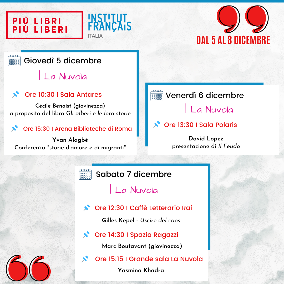 Programma della venuta degli autori francesi durante il festival Più libri Più liberi
