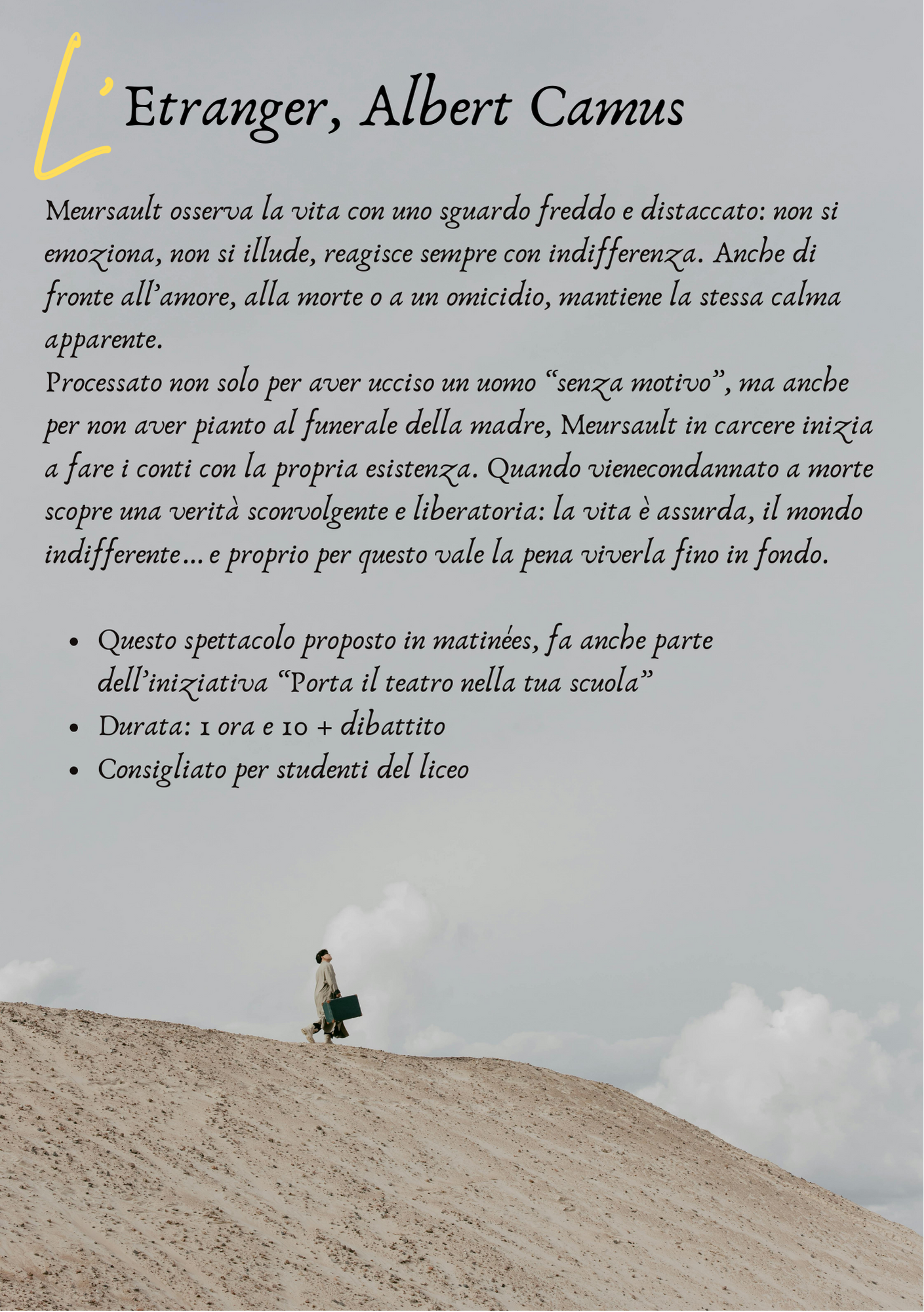 16 au 20 : L’Étranger (Rome, Milan, Turin, Bologna, Firenze, Napoli)