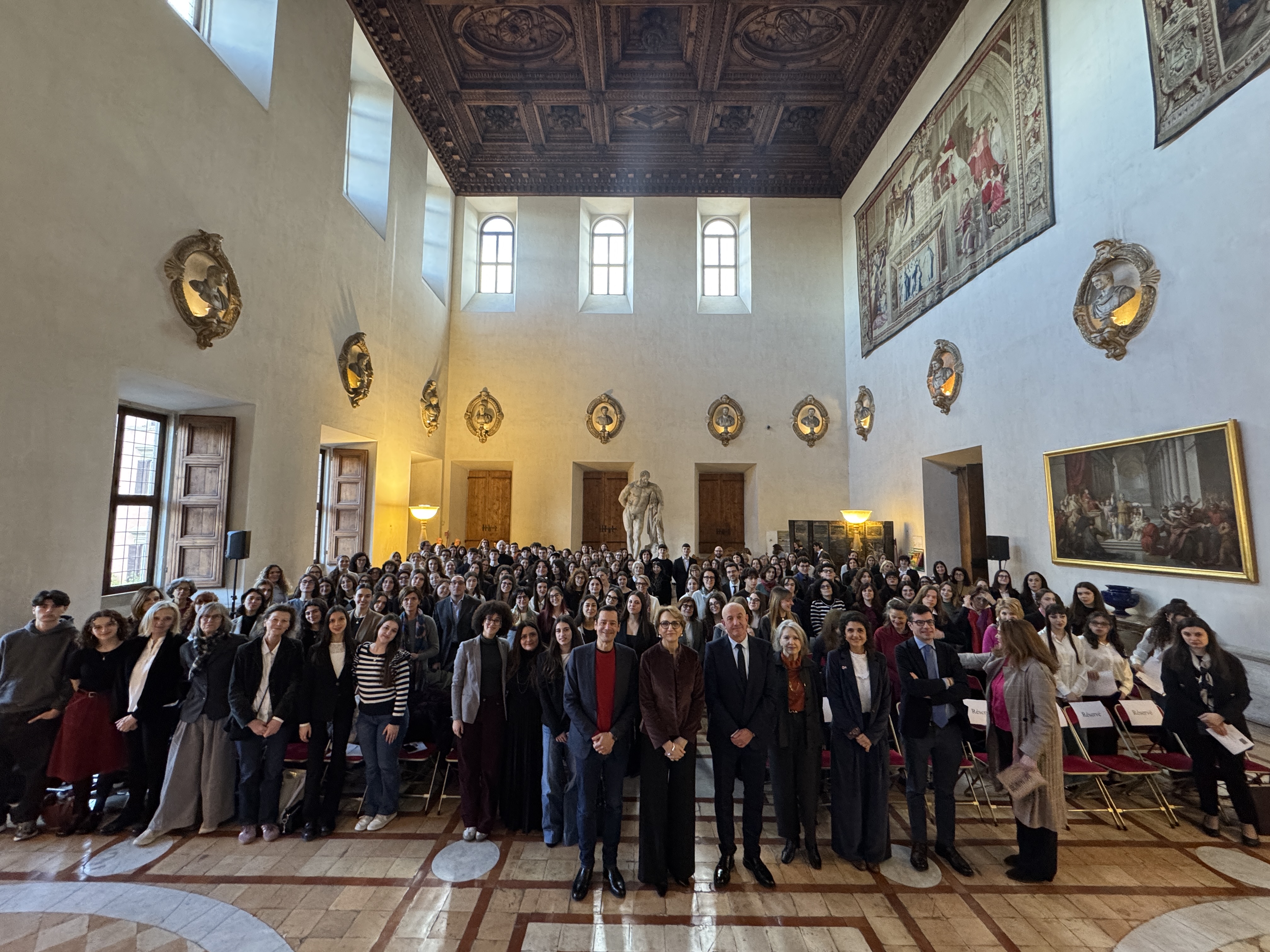 Une cérémonie exceptionnelle réunissant 130 élÚves et 70 enseignants autour de la littérature francophone, ouverte par Anne-Marie DescÎtes, ambassadrice désignée de France en Italie, en présence de :