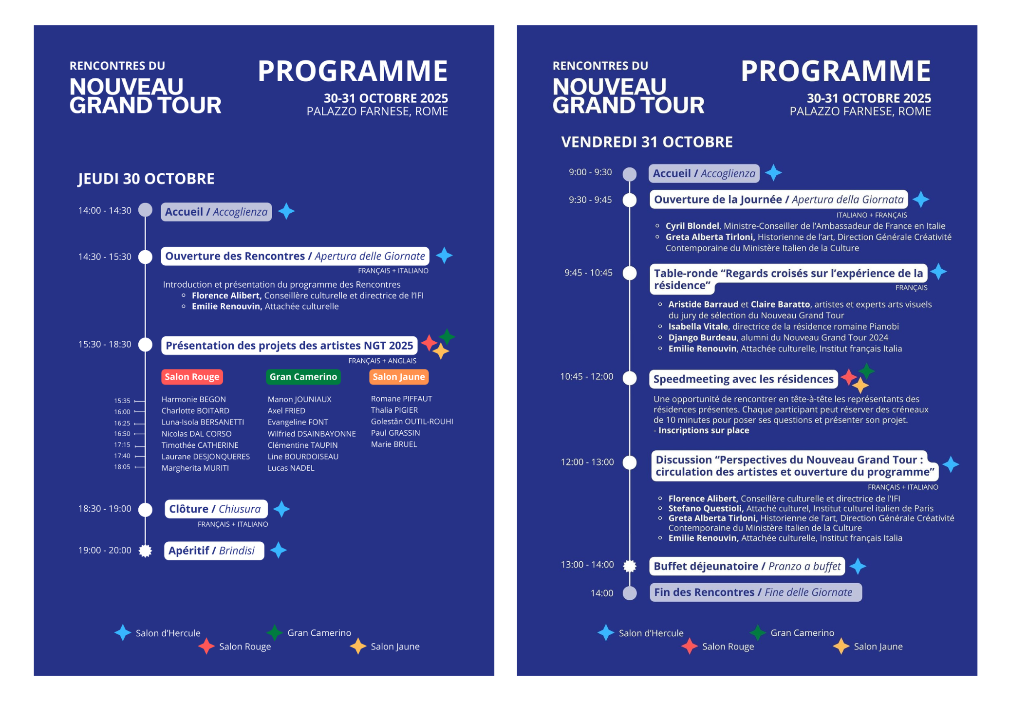 Il 30 e 31 ottobre 2025, nei suggestivi spazi di Palazzo Farnese, gli artisti vincitori dell’edizione 2025 del Nuovo Grand Tour e alcune delle residenze coinvolte nel programma si sono incontrati per due giornate ricche di opportunità di confronto.