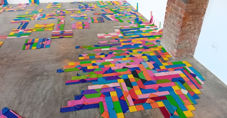 Il lavoro di Julie Maquet approfondisce il potenziale artistico degli elementi raccolti, mescolando disegno, scultura e installazione, in un approccio ibrido. La Bottega viene quasi interamente occupata da un’opera in corso di realizzazione, lavorata a partire da una scorta di tappetini da bagno comprati in stock di liquidazione. Saranno visibili altre opere tessili e opere su carta in corso di realizzazione.