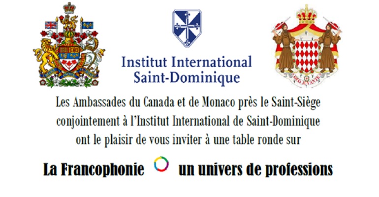 Nell’ambito delle celebrazioni per il Mese della Francofonia, l’Ambasciata del Canada presso la Santa Sede e l’Ambasciata di Monaco presso la Santa Sede hanno il piacere di invitarvi a una tavola rotonda sul tema delle professioni.